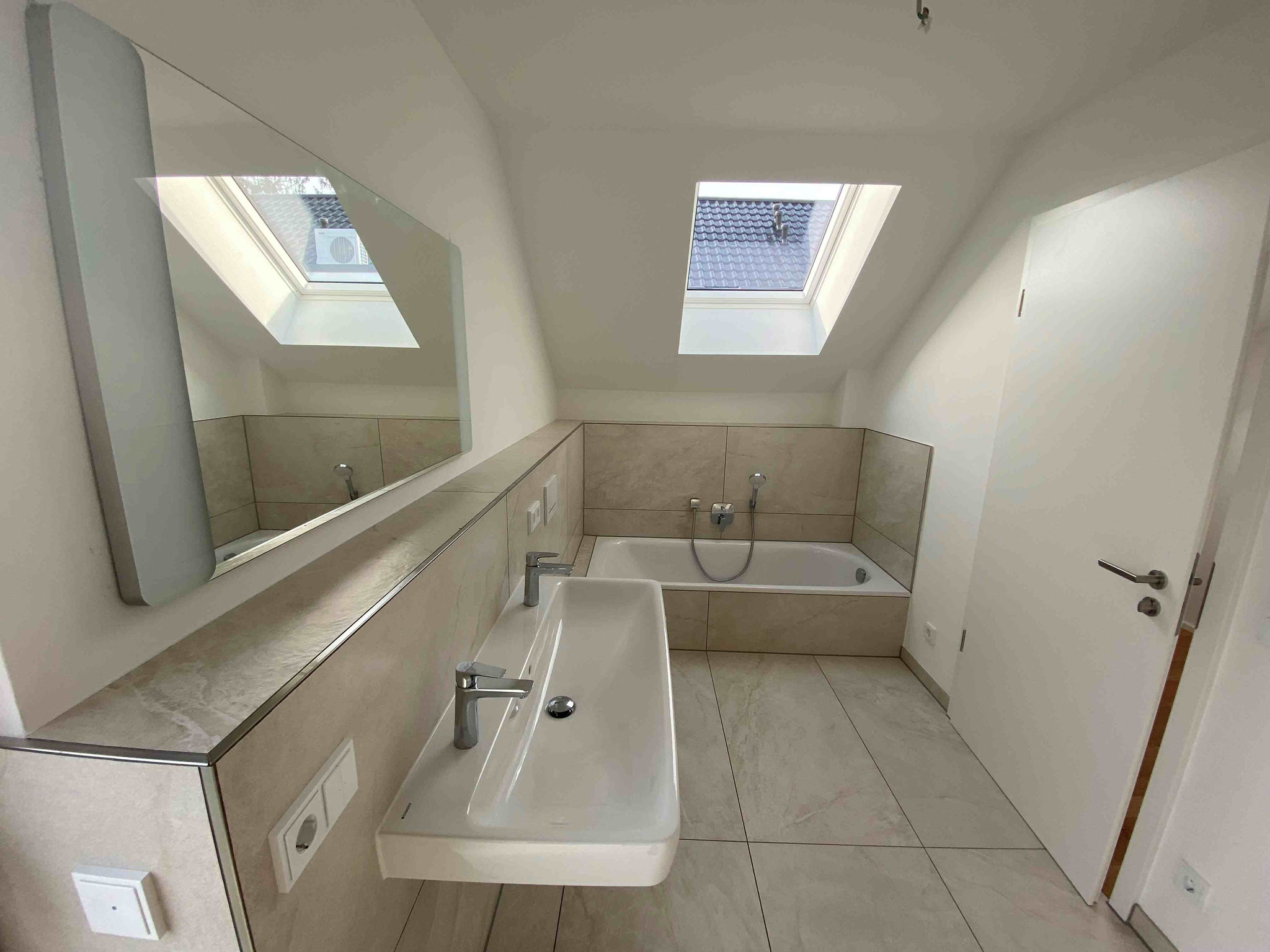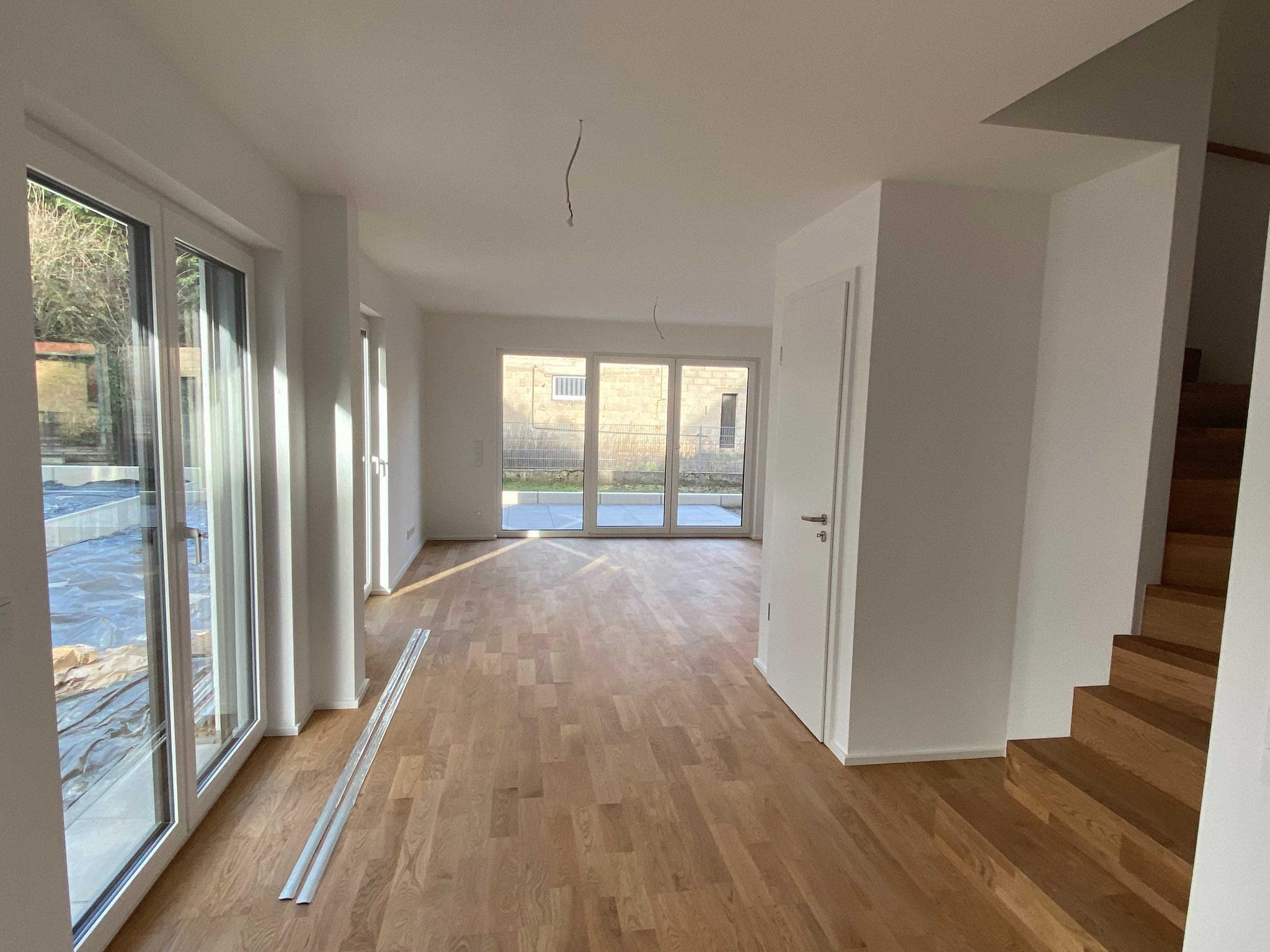 große Doppelhaushälfte idyllisch am Bachlauf gelegen, 2 Bäder + Gäste-WC, Terrasse und Dachloggia, moderne Haustechnik und zukunftssicher mit Wärmepumpe, Neubauerstbezug im Jan. 2026